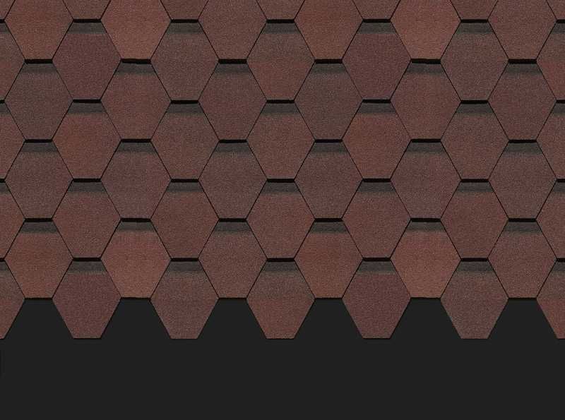 Мягкие переходы каштановых оттенков подчеркивают красоту формы лепестков гонтов. Затемненные участки создают выразительный эффект объемного покрытия. Черепица выигрышно смотрится с сайдингом в бежевых оттенках и под натуральное дерево.