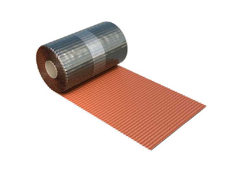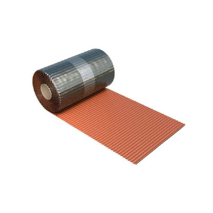 Рулонный материал из полиизобутилена, армированный алюминиевой сеткой, с самоклеящимися бутиловыми полосами на нижней стороне полотна и защитной антиадгезионной пленкой.